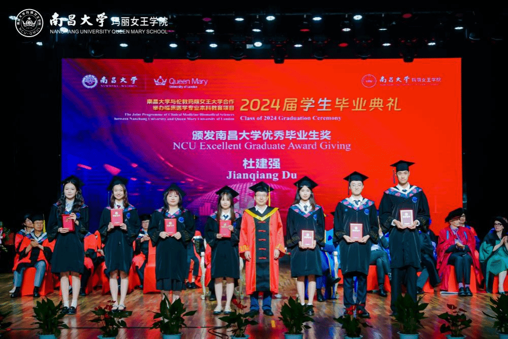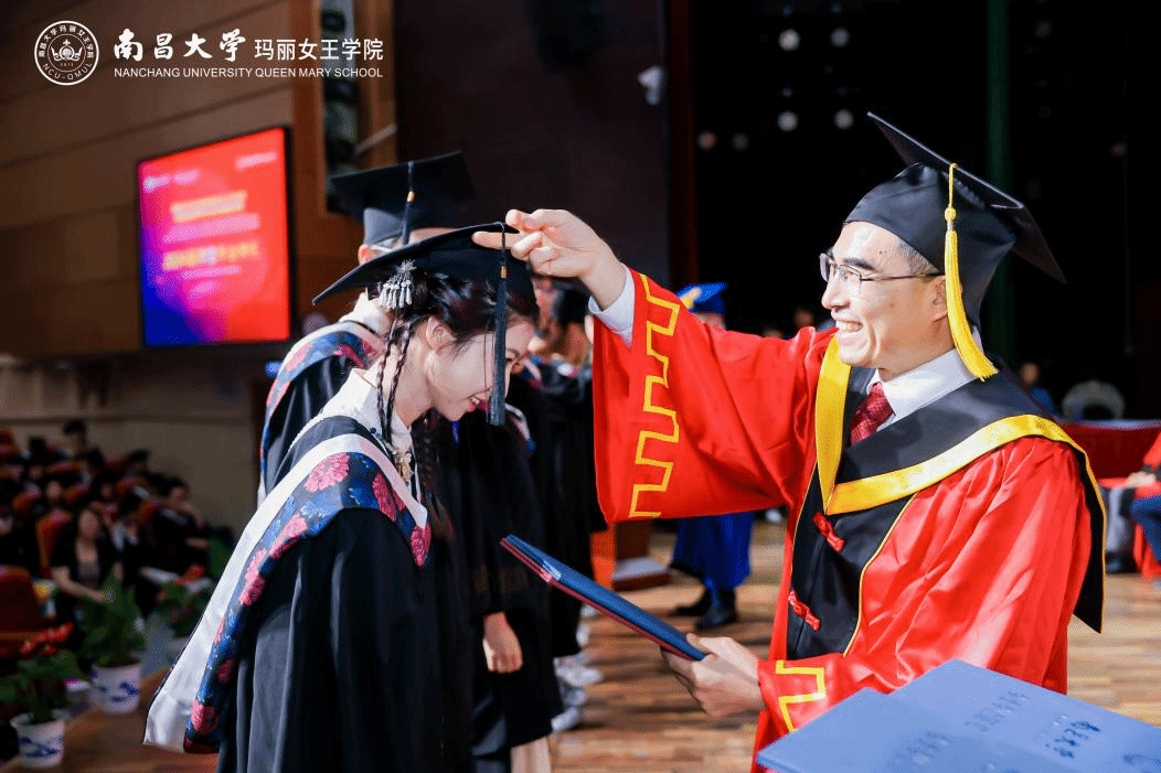 在頒獎和學位授予環節中,中英雙方領導為獲得南昌大學優秀畢業生獎、倫敦瑪麗女王大學校長獎、學院獎的優秀畢業生頒發榮譽證書。雙方校長為獲得學位的畢業生逐一撥穗并頒發學位證書。
