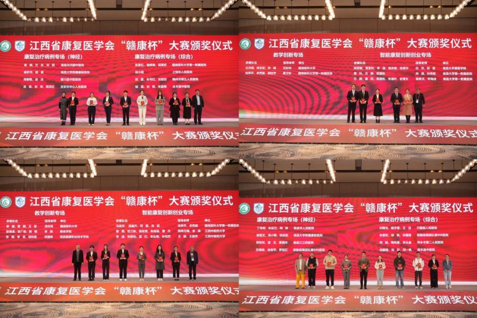 論壇還舉辦了江西省康復醫學會“贛康杯 ”大賽,分康復治療病例專場2場、教學創新專場1場、智能康復創新創業專場1場共4個專場進行比拼,并在賽后為獲獎選手頒發榮譽證書。