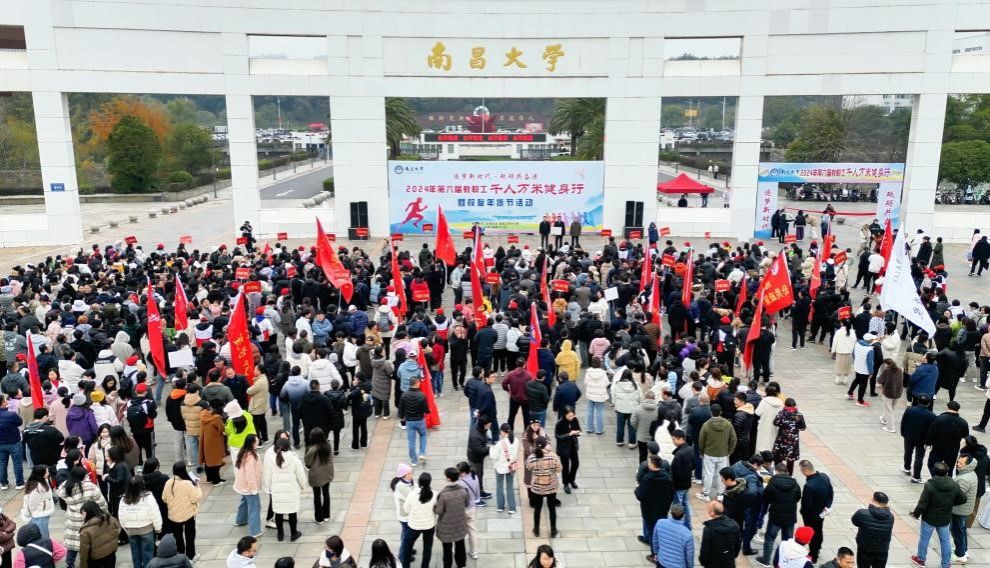 本網訊(學生記者毛致軒、周杰慧)初冬寒意漸濃,校園被一股別樣的熱情溫暖著。12月12日下午,在前湖校區,南昌大學第六屆教職工“千人萬米健身行”暨校友年貨節活動如約而至。校黨委書記羅嗣海鳴槍并宣布健身行開始, 校紀委書記萬繼鋒、副校長吳丹,校黨委常委、組織部部長劉建光與近2000名教職工從前湖校區北院一號門廣場出發,用腳步丈量南大,感受前湖風光,擁抱健康生活。